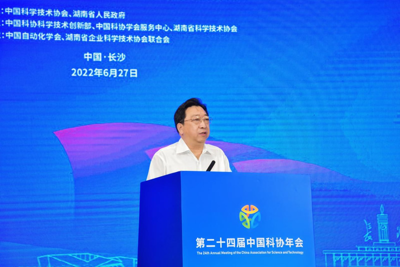 中国工程院院士、中南大学教授、中国自动化学会副理事长桂卫华,中国工程院院士、湖南大学教授、中国图象图形学学会理事长王耀南,中国工程院院士、中南大学副校长、中国有色金属学会副理事长柴立元,中国工程院院士、湖南省农业科学院院长、湖南省食品科学技术学会理事长单杨等院士专家先后作“碳达峰碳中和与工业智能” “人工智能技术推动数字经济产业发展” “湖南有色金属产业发展与重金属污染防治对策建议” “农产品-食品营养与安全问题分析及对策”等主旨报告。