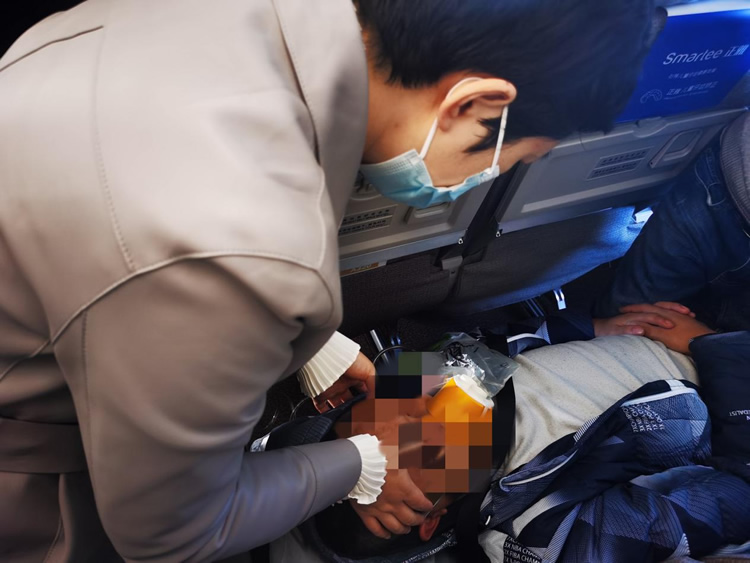 在陈蕾教授及时、专业的处置下,患者病情得到有效控制,飞机降落后,患者第一时间被送往医院。